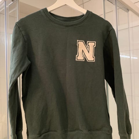 KappAhl genser for gutt i størrelse 164. Genseren er grå og laget av bomull med 5 % viskose. Den har et trykk med julemotiv på forsiden. Passer til hverdagsbruk
