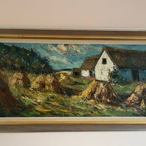 Signert maleri landskap i ramme