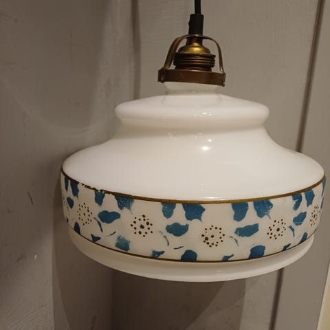 2 stk vegglampe med to lysarmaturer og stoffskjermer. Lampen har en klassisk design med metallarm og dekorative detaljer. Passer til belysning i stue, gang eller soverom.