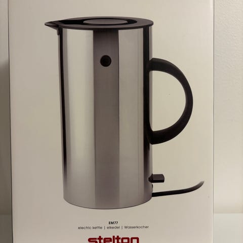 Stelton EM77 vannkoker med kapasitet på 0,5 liter i svart farge selges fordi vi ikke bruker vannkoker. Uåpnet og ubrukt. Kan hentes i Trondheim eller sendes med fiksferdig.
