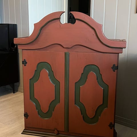 Pent brukt, lakkert furu. Dører fungerer som de skal. Må hentes.