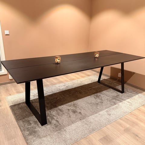 Mørke brunt spisebord 89 cm bredt, 1.60 langt- kan bli 2.60 langt med ileggsplater.