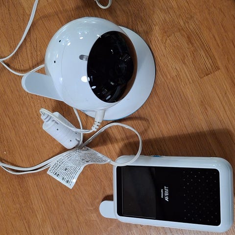 Brukt ca 2 mnd, ligger i original eske med oppbevaringspose. Svært følsom, videoskjerm lyser opp ved hver bevegelse selv om det ikke gis lyd. Trådløs rekkevidde 50 m innendørs, 300 m utendørs.