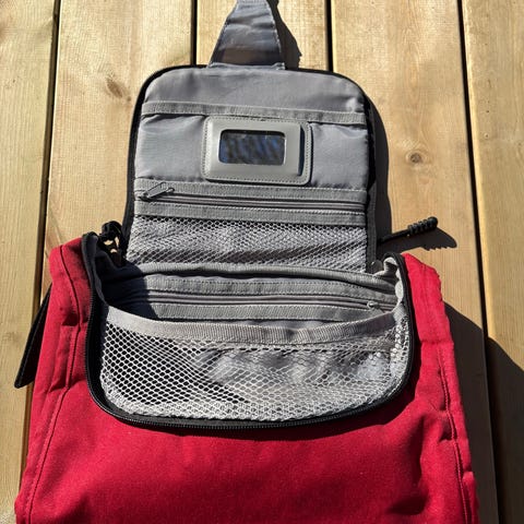 Selger en helt ny kosmetikkveske i imitert skinn. Aldri brukt, fortsatt med merkelapp. Praktisk og romslig med glidelås og krok til oppheng. Perfekt til reise eller hjemmebruk.