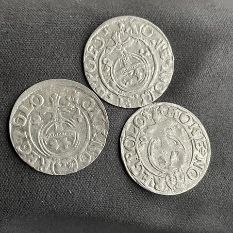 3 stykker ,3 Polker 1614-1627 Sigismund III Vasa, sølv