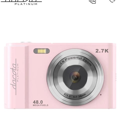 Dacota digitalt kamera i rosa farge. Kompakt design med innebygd skjerm og enkel betjening. Egnet for daglig fotografering og enkel bruk.
