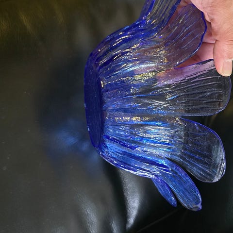 Munnblåst glass med organisk frihåndsform og bølgende kant.