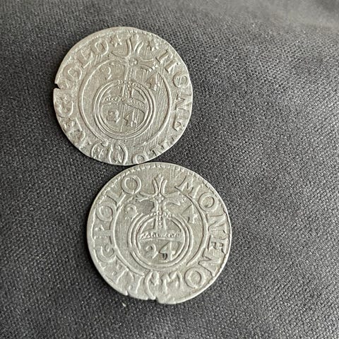 2 stykker ,3 Polker 1614-1627 Sigismund III Vasa, sølv