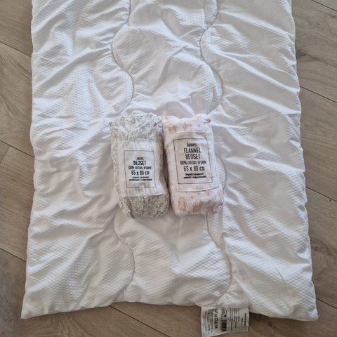 Baby silkedyne, dette var den eneste dynen som ble liggende trygt over babyene våre gjennom hele natten. Siden dynen er av silkefiber er den litt tung og legger seg godt rundt babyen. Allergivennlig.