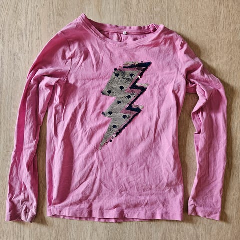 Name it genser i størrelse 134/140 for jente. Genseren er mørk gammelrosa aktig farge og laget av bomull. Den har en ribbestruktur og en enkel rund hals. Fine puffermer så den er veldig fin på 😍
