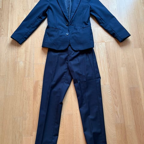 Blå dress. Bukse str 128. Jakke str 122, men brukt samtidig av vår sønn.