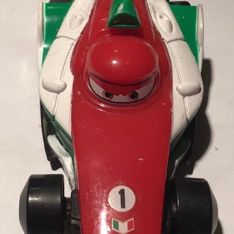 Disney lekebil i gul farge. Laget for barn, med detaljer som øyne på frontruten og realistiske hjul. Egnet for lek og samling.