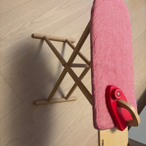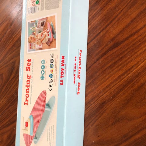 Sett med strykebrett og strykejern selges. Strykejernet har to lydeffekter og fungerer slik det skal. Det er skrevet et navn på strykebrettet, vises på bilde 2. Mye lek igjen.