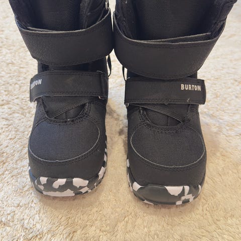 Burton snowboardstøvler i str. 38 i svart og blå farge. Støvlene har justerbare snøringssystemer for enkel tilpasning.