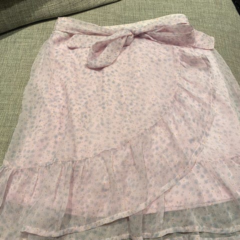Vero Moda skjørt i størrelse S, flerfarget mønster og laget av polyester. Skjørtet har elastisk midje og volangdetaljer nederst. Egnet for kvinner.