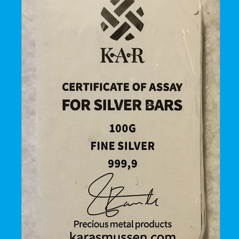 Ka Rasmusen Sølvbarrer 100 g 999,9 fin sølv