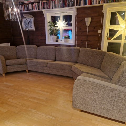 Det er vanskelig å støvsuge bort smuler/støv under/mellom putene. Ene ermlenet er dratt ut noe tråder av en katt.