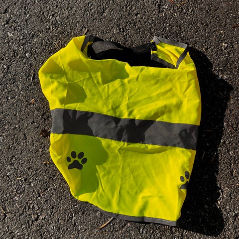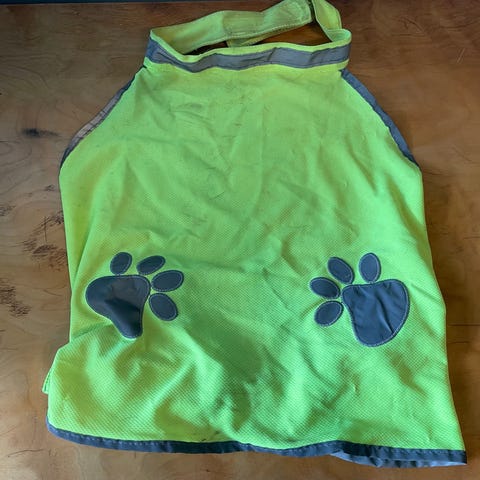 Tass Xtreme refleksvest for hund i størrelse XL. Vesten er fluoriserende gul med grå felt og refleksdetaljer for økt synlighet i mørket. Justerbare remmer med klipsfeste gjør at den kan tilpasses hunden. Materialet er vaskbart, og vesten er beregnet for bruk på ulike hundetyper ved tur og aktivitet i dårlig lys eller trafikkerte områder.