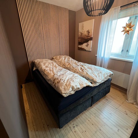 Sengen er i utmerket stand. Dette er en kvalitetskontinentalseng som gir god støtte og komfort for en god natts søvn.