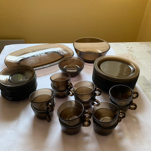 RETRO servise i blått glass, fra VERECO FRANCE.