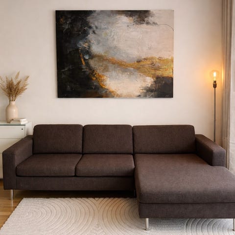 Ingen hull eller permanente flekker, men fargen er noe solbleket på baksiden (som ikke vil synes hvis sofaen skal stå inntil en vegg). Har forsøkt å ta bilde av det, men er veldig vanskelig å illustrere. Den er fortsatt grå, men litt lysere enn fremsiden av sofaen.