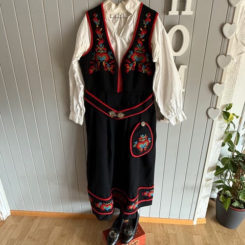Som ny, passer en stor person, kan bli større vis tas ut. Solid skjorte i lin og bomull + underskjørt i samme kraftige bomullsstoff. Alle mål er detaljert under hvert bilde