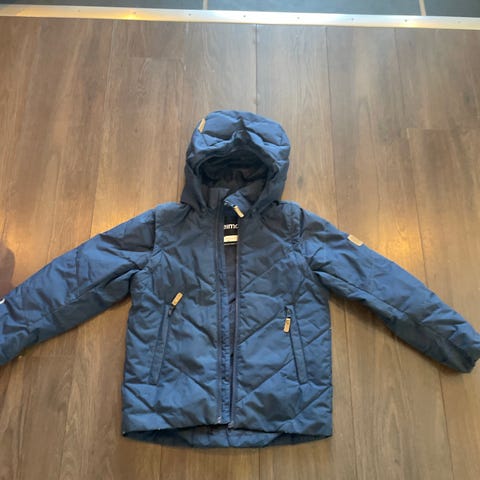Reima barnejakke i størrelse 128, blå farge. Veldig fin vinterjakke fra Reima, den er pent brukt. Mangler pelskrage på hetten