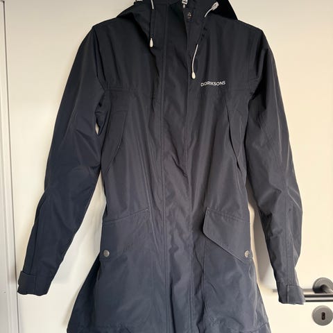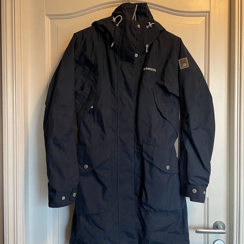 Min fine Didriksons regnkåpe/ regnjakke i str XS selges, da den rett å slett har blitt for liten. Jakken har hette, flere lommer og innerlommer. Brukt en del men fortsatt veldig fin.