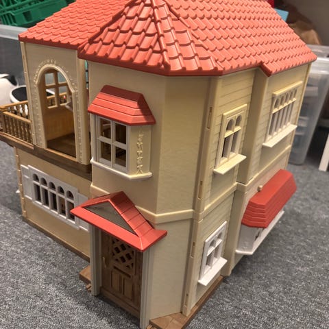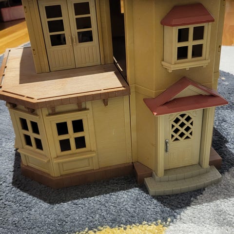 Det er neon små flekkmerke på trappa og en hjørneplate.