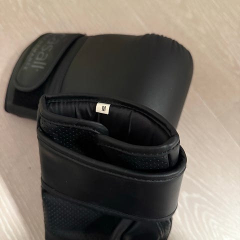 Casall boksehansker i svart farge. Hanskene har hvite detaljer og borrelås for justering. Designet for trening og kampsport. Størrelse M