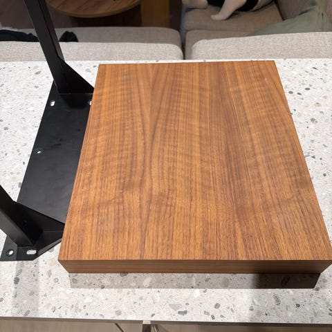Isolerende vegghylle for platespiller. Veldig praktisk der vibrasjoner fra gulv medfører forstyrrelser på avspilling av platene dine
