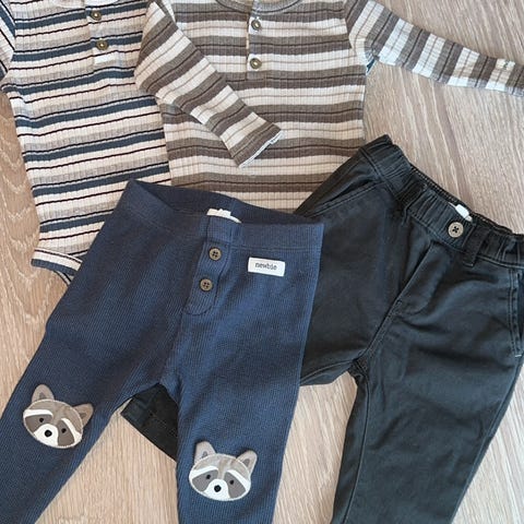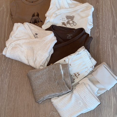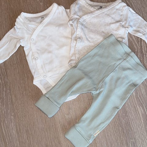 4 bodyer og 4 bukser fra H&M i str 56. De er veldig lite og pent brukt.