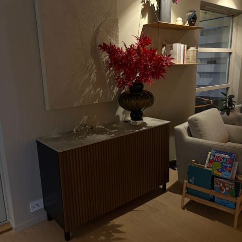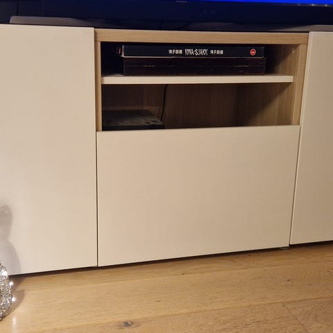 Pent brukt bestå kommode. Er lys inni glassskapene. Ingen bruksmerker. Kjøpt ny for 4800.
