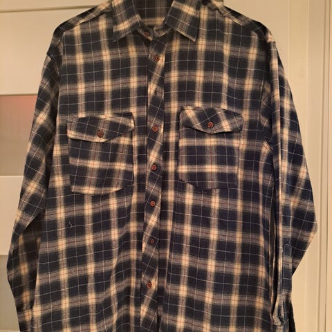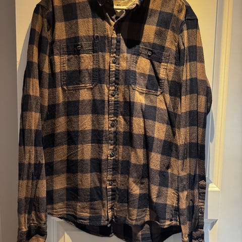 2 skjorter i flanell. 100% bomull. En brun/svart og en burgunder/svart. Str. L. I fin stand. Selges samlet.