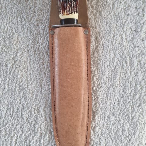 Gammel bowie kniv produsert i italia.Selve kniven er 37 cm lang.Selges kr 2500.Kan sendes