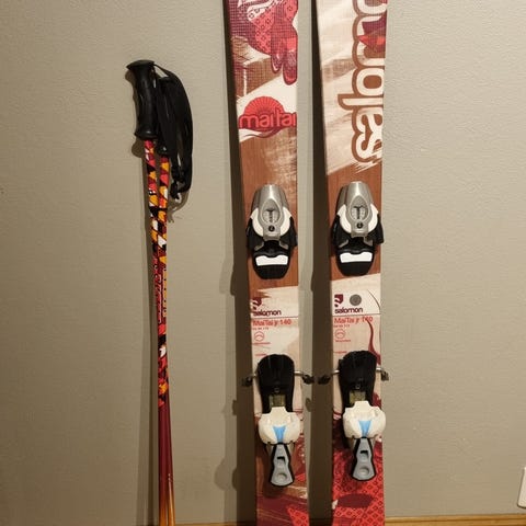 Head slalåmski lengde 163 cm. Sålen er pen etter så mange år. Fine å stå i bakken med.