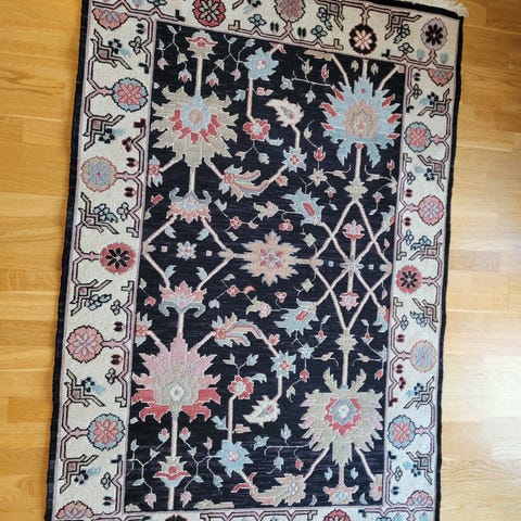 Fint gulvteppe uten bruksmerker som har stått på gjesterom. Ligger fint på gulvet og krøller seg ikke.