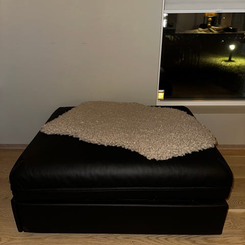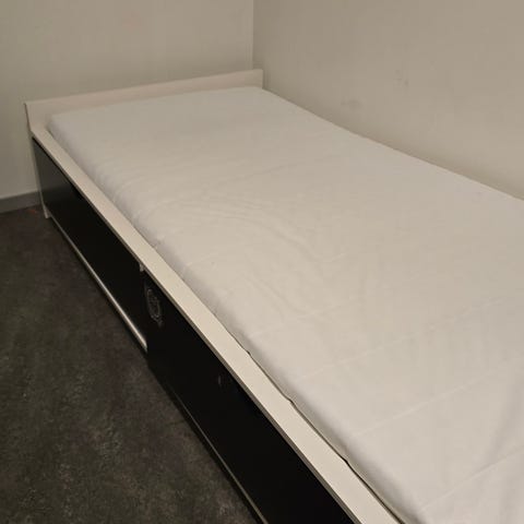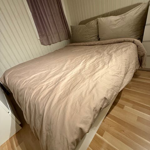 Den er blitt brukt på et barnerom så noen merker er det. Men den er nyvasket ig alle delene er der. Så ingen store feil eller mangler. Nypris på ikea er 3595kr