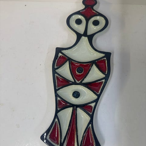 Figurene tilhører en serie samleobjekter som ofte kalles "Galaaen-figurer" eller veggrelieffer. De er laget i chamotte-leire med Galaaens karakteristiske fargerike glassurer, spesielt den dype blå og den rustrøde fargen du ser her.