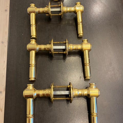 Dørhåndtak i svart metall, med rund rosett og firkantet feste for montering. Passer til standard dørtykkelser og gir et enkelt, funksjonelt grep for åpning og lukking av dører.