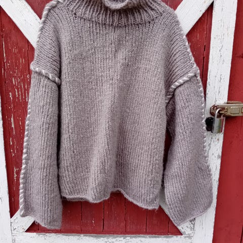 Hjemmestrikket stichgenser selges, litt feil størrelse så blir dessverre ikke brukt🤍 kun brukt et par ganger. Strikket i dobbel tråd lieve garn! 90% KID Mohair.