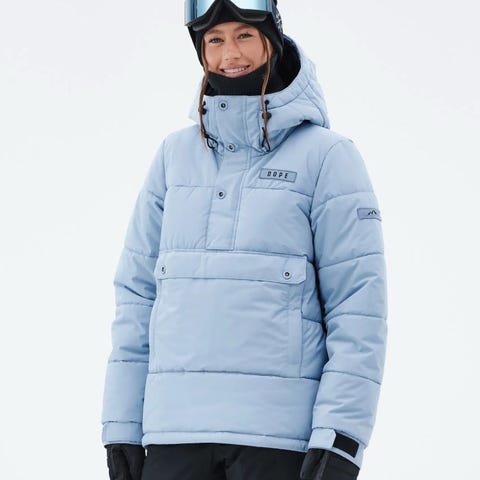 Oakley skijakke for dame størrelse S i blå og beige farger. Jakken har glidelåslommer og hette, samt glidelås på ermet. Passer til utendørs bruk med vind- og vannavstøtende materiale.