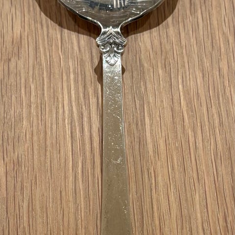 Selger kakespade I 925 S. Klarer ikke finne ut hva mønsteret heter. Ca 25 cm lang. Kan hentes på Hasle evt betaler kjøper porto.