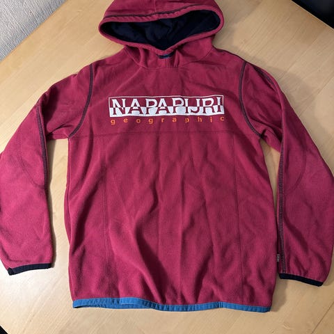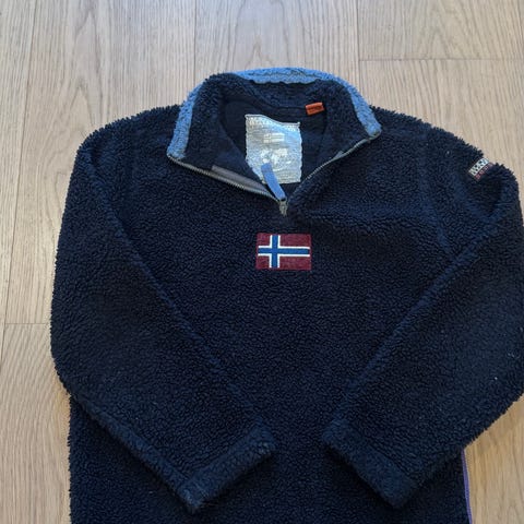 Marineblå Napapijri fleece genser til gutt 14 år (162), glidelås i halsen.
