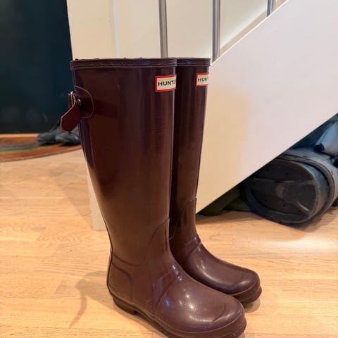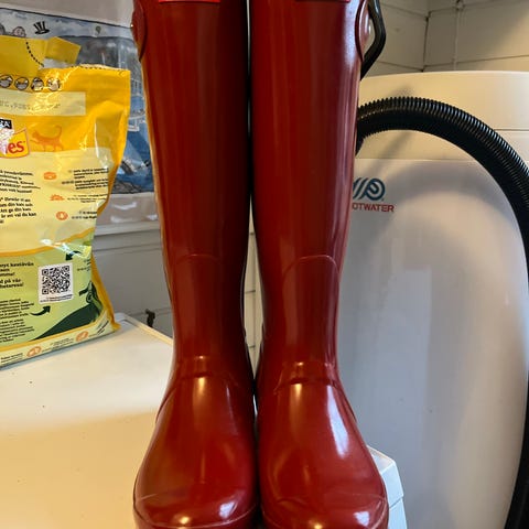 Søkeord: Hunter, gummistøvler, regnstøvler, str 38, rød, høy modell, klassisk, original Hunter, festival, vinter, slaps, snø, vått vær, friluft, dame støvler