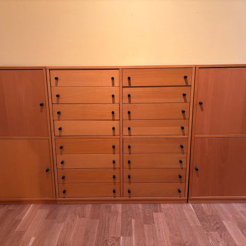 Selger 4 lengder med BBB reol. 3 lengder har bredde på 80 cm og en lengde på 40 cm ( den er ikke med på bilde). Alle seksjonene selges samlet. Kan demontere hyllene hvis det ønskes. Hyllen må hentes på Tårnåsen.