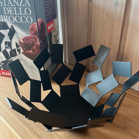Alessi trådkurv fra Alessi er en ikonisk kurv designet av Ufficio Tecnico Alessi. Med sitt luftige trådmønster og tydelige silhuett blir den både funksjonell og dekorativ på bordet. Perfekt for sitrusfrukter eller som en organiserende detalj på kjøkkenet eller i stuen — den fremhever innholdet samtidig som den gir rommet karakter. Enkel å flytte etter behov og lett å rengjøre, en tidløs følgesvenn som gjør hverdagen litt vakrere.