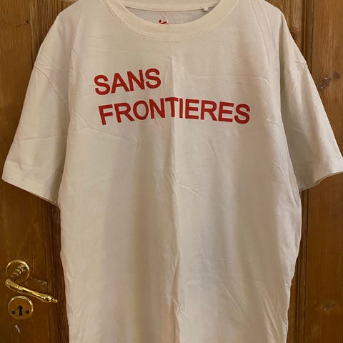 Makia T-skjorte i fargen hvit, laget av bomull. Størrelse S, designet for herre. T-skjorten har trykk på forsiden med merkevaren Makia og grafisk motiv. Et lite rift ses på siste bilde. Kjøpt ny for kr 499,-