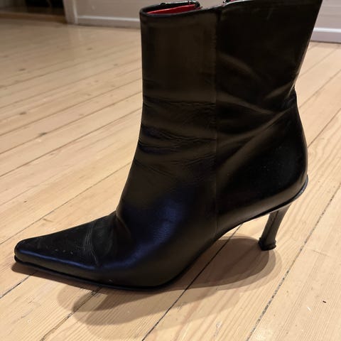 Tøffe boots fra Freelance kjøpt i Freelance butikk i Paris. Fantastisk kvalitet med solid gummisåle, men dessverre for høye for meg med vonde knær. Helhøyde 8 cm. Jeg er vanligvis str 38, men bruker 37 i Freelance .
