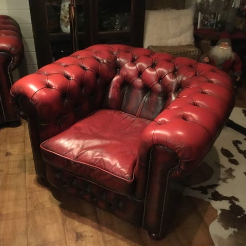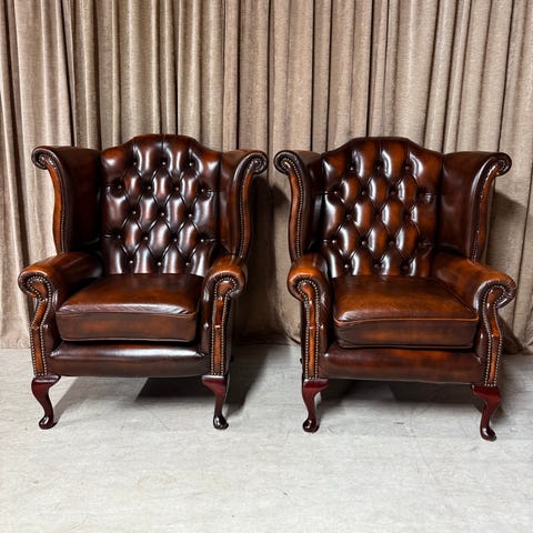 Høykvalitets skinn stoler i Chesterfield still kjøpt på Engelske møbel huset i Drammen for ca 20år siden, lite brukt og perfekt stand! Prisen er for begge stolene og bord/lampe kan følge med. Selges fordi vi skal flytte i leilighet der det dessverre ikke er plass til dem.
